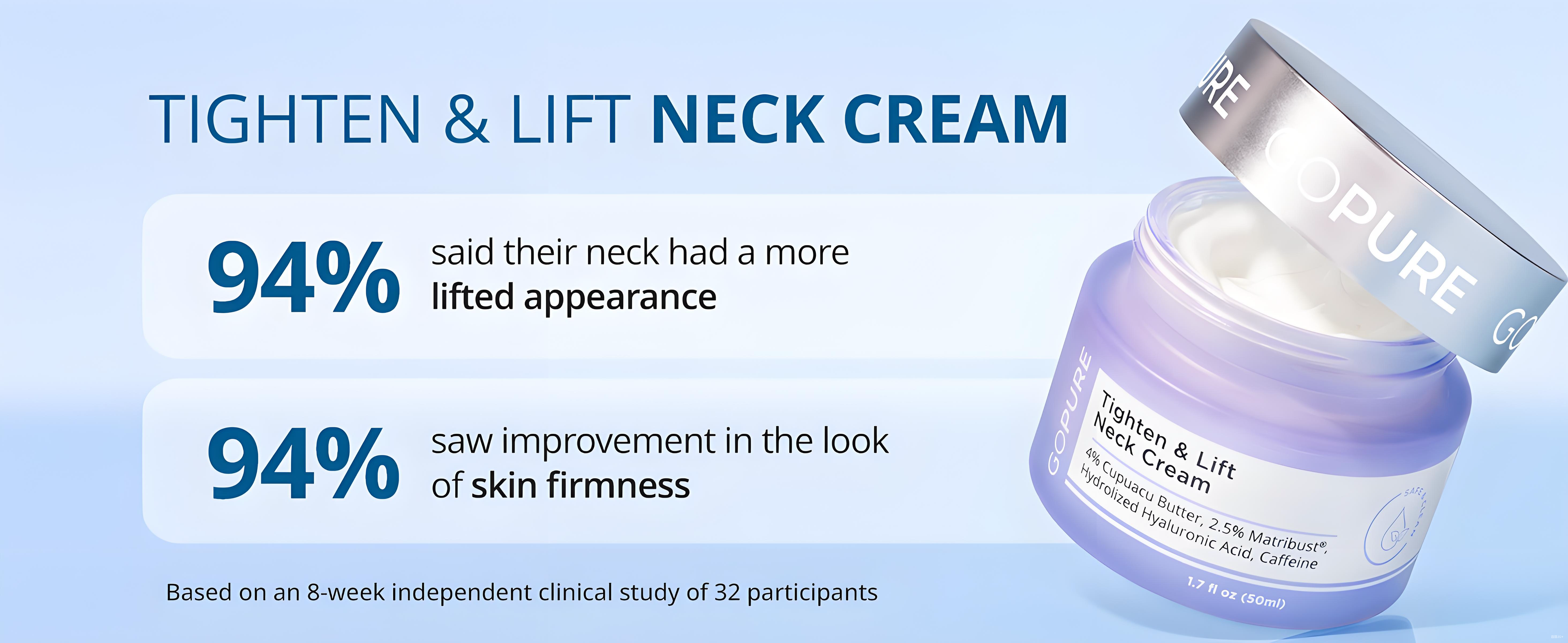 Our goPure Neck Cream is formulated to help improve the appearance of firmness and smoothness on the neck and chest, giving skin a more lifted and youthful-looking appearance.